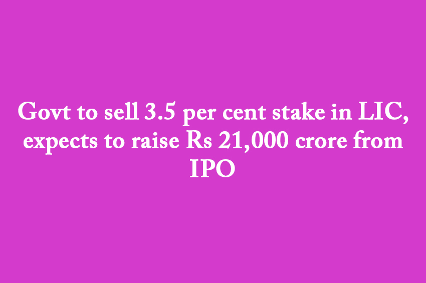Govt to sell 3.5 per cent stake in LIC, expects to raise Rs 21,000 crore from IPO