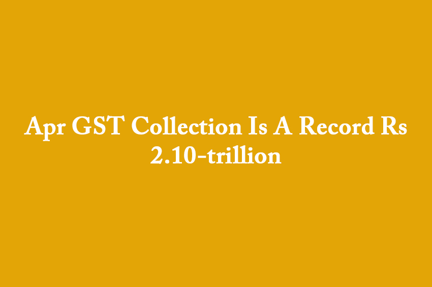 The country’s Goods and Services Tax (GST) revenue collection in April of this year has clocked a record Rs 2.10-trillion.