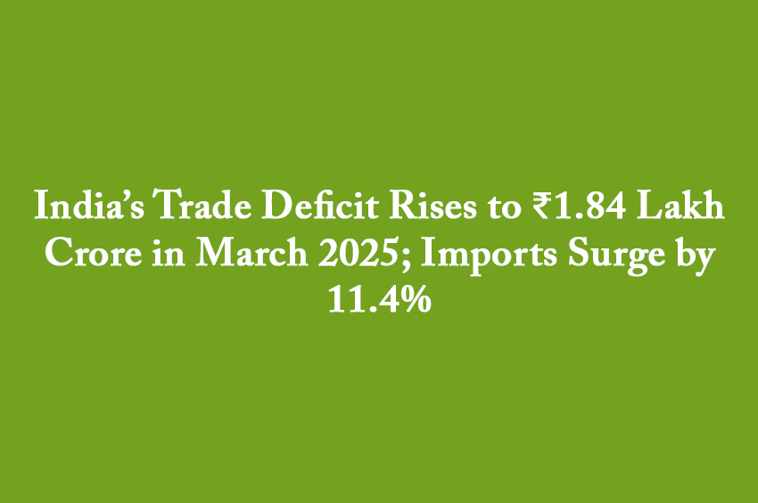 - March 2025 trade deficit surged to ₹1.84 lakh crore, a 34% jump from February.