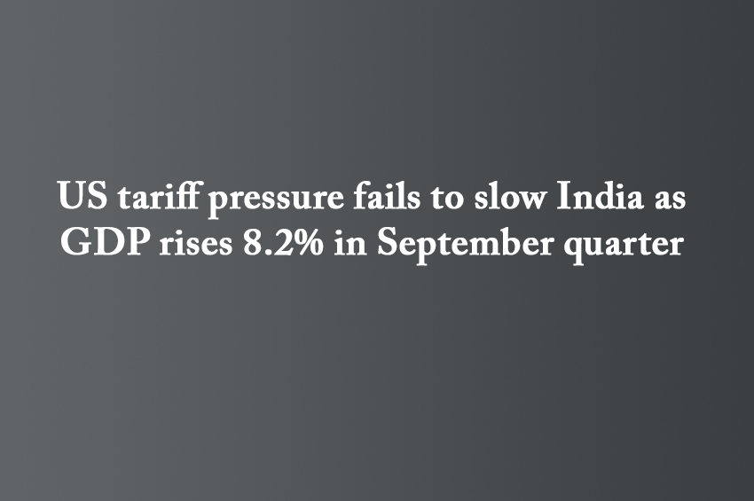 Mumbai. India’s economy posts its strongest performance in six quarters with GDP expanding 8.2 per cent in the July–September period, beating earlier expectations and signalling a sharp rebound despite global headwinds. The rise comes at a time when several economies, including emerging markets, are struggling with the impact of US tariffs, weak private investment and slowing external demand. India had recorded 7.8 per cent growth in the April–June quarter, while the same period last year stood at 5.6 per cent. Fresh data from the National Statistical Office shows that rural demand, government spending and a clear pick-up in factory output played a decisive role in lifting the numbers.