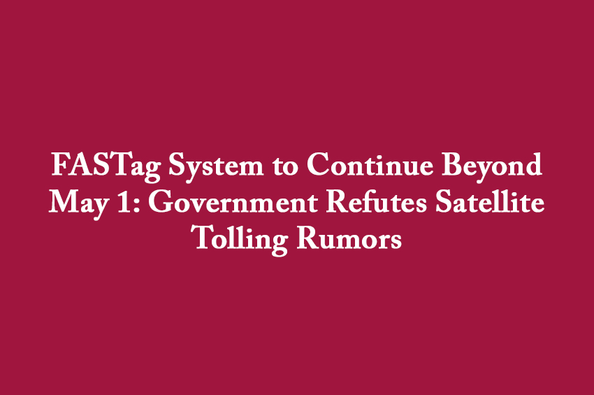 FASTag System to Continue Beyond May 1: Government Refutes Satellite Tolling Rumors