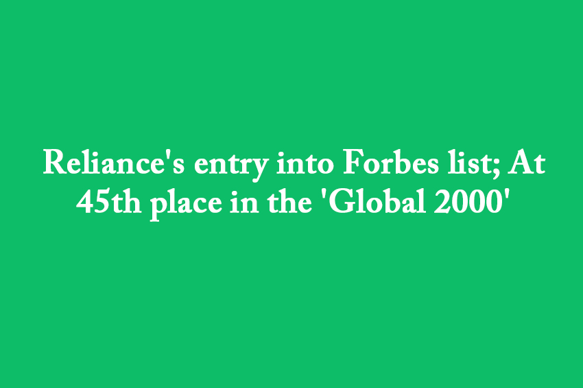 Forbes recently announced the 'Global 2000' list and India's top industrialist Mukesh Ambani's Reliance Industries has topped the list...