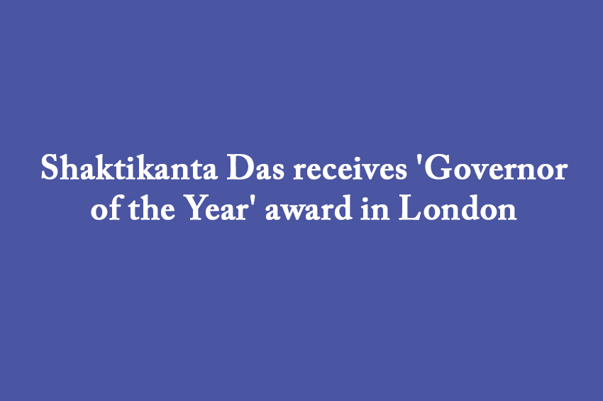 Shaktikanta Das, The Governor of India's Central Bank Reserve Bank of India, has been honored with the 'Governor of the Year' award...