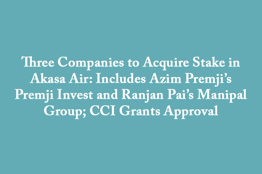 Three major investment entities – Premji Invest led by Azim Premji, Ranjan Pai’s Manipal Group, and 360 ONE Asset – will jointly acquire a stake in Akasa Air’s parent company, SNV Aviation...