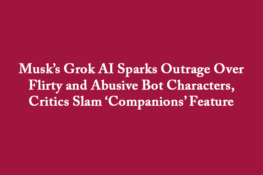 Elon Musk’s AI company xAI has launched a new feature in its chatbot Grok, called “Companions”. This includes two animated characters—‘Ani’, a flirtatious anime girl, and ‘Bad Rudy’, an aggressive red panda...