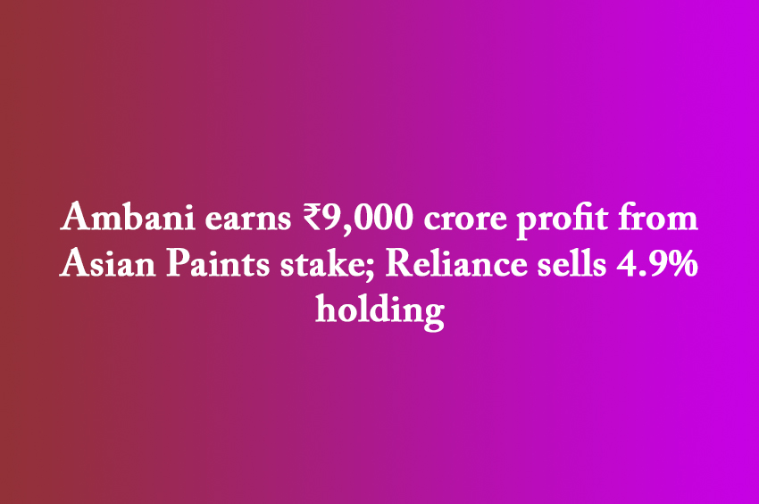 Mukesh Ambani, India’s richest businessman and chairman of Reliance Industries, has booked a massive ₹9,000 crore profit by selling his long-held stake in Asian Paints...