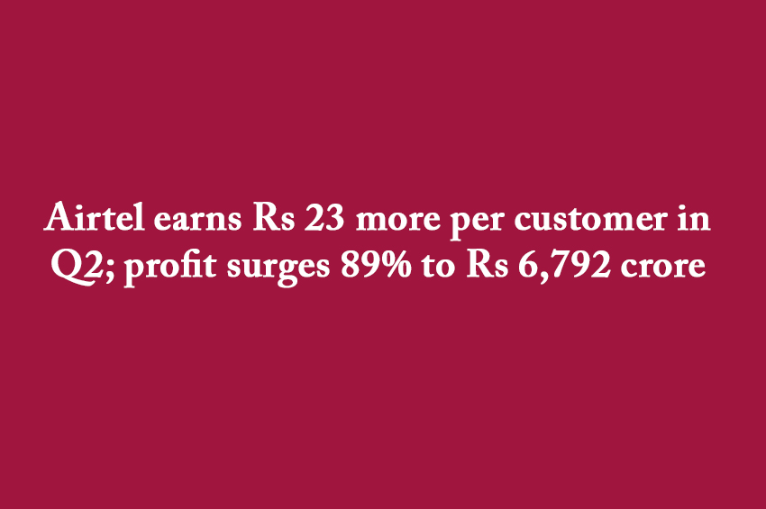 Telecom major Bharti Airtel has reported a sharp 89% rise in its consolidated net profit to Rs 6,791.7 crore...