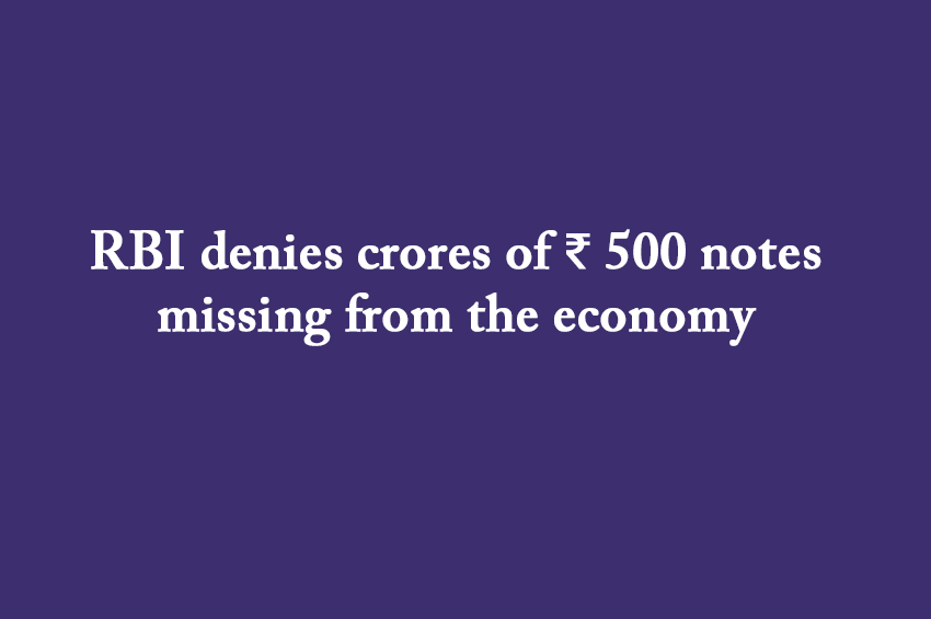 The Reserve Bank of India (RBI) has denied that the matter of missing ₹ 500 notes worth ₹ 88,032 crore from the system is incorrect...