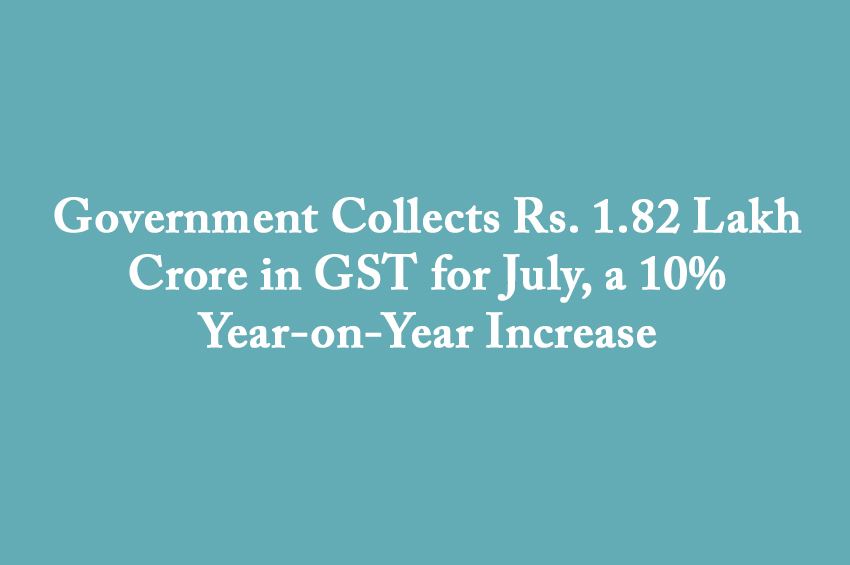 In July 2024, the government reported collecting ₹1.82 lakh crore from Goods and Services Tax (GST), reflecting a 10.3% year-on-year increase...