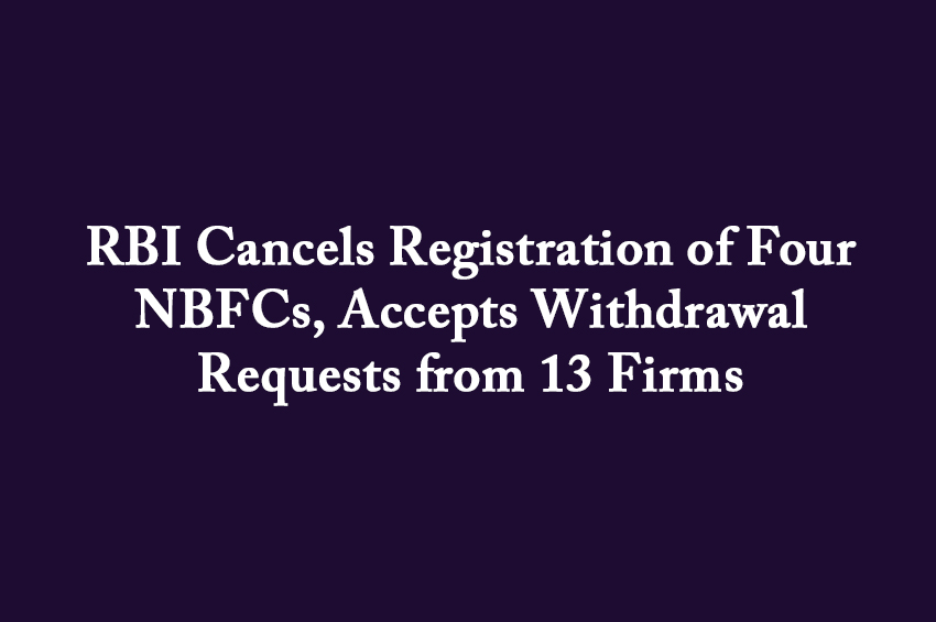 The Reserve Bank of India (RBI) has cancelled the registration of four non-banking financial companies (NBFCs) ...