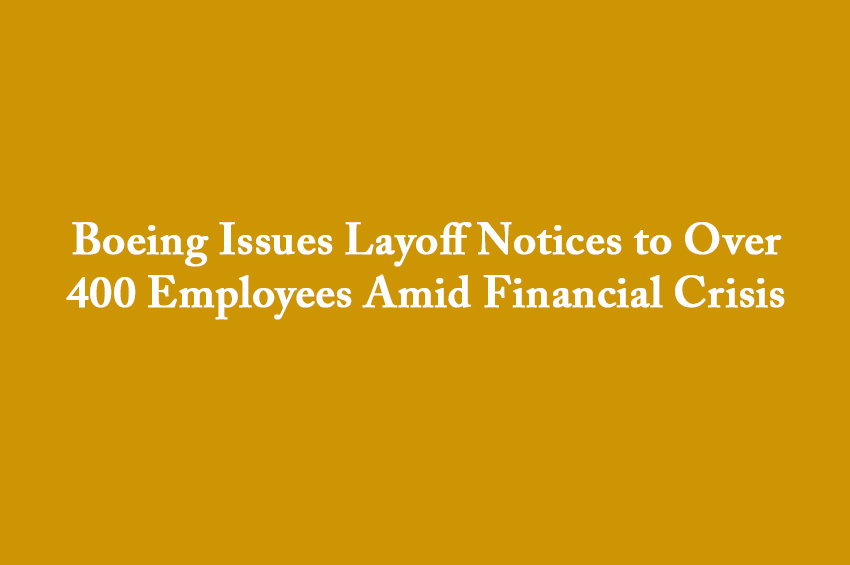 Boeing has sent layoff notices to over 400 members of its Professional Aerospace Labor Union as the company struggles with financial difficulties....