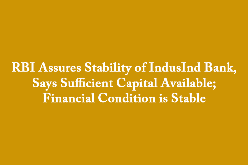 The Reserve Bank of India (RBI) has confirmed that IndusInd Bank has adequate capital and remains financially stable...