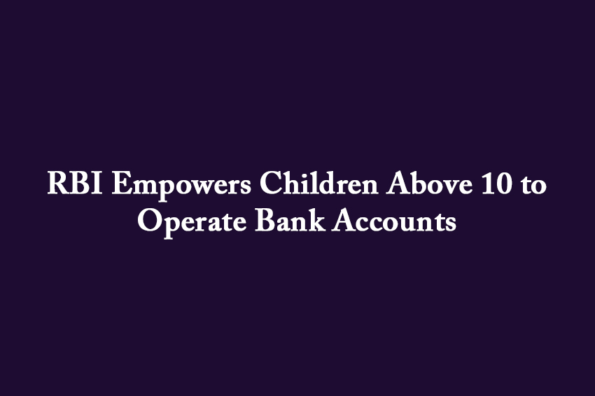 In a significant move aimed at promoting financial literacy and independence among young individuals, the Reserve Bank of India (RBI) has allowed children aged 10 years and above...