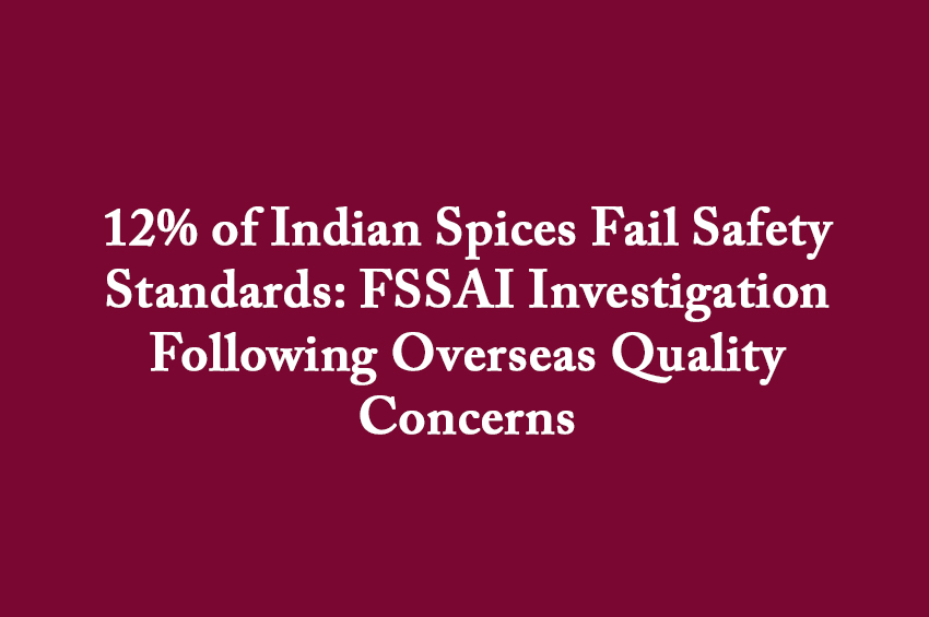 A recent investigation by the FSSAI has revealed that 12% of spices sold in the country do not meet the required quality & safety standards...