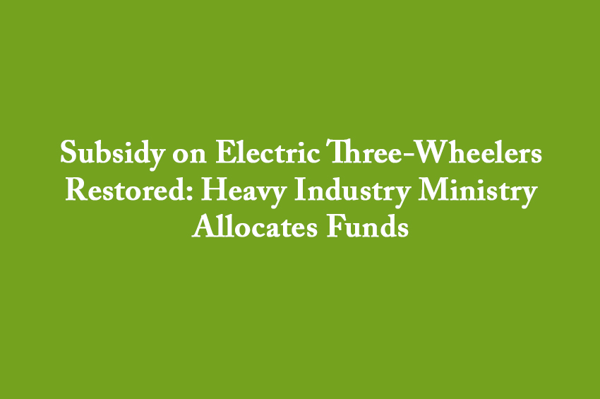 The Ministry of Heavy Industry (MHI) has resumed subsidies for electric three-wheelers under the PM e-Drive Scheme...