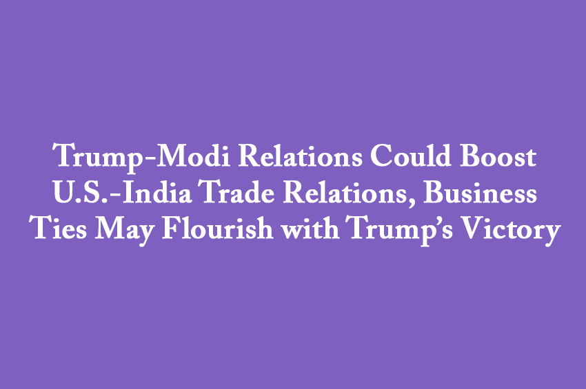 Trump-Modi Relations Could Boost U.S.-India Trade Relations, Business Ties May Flourish with Trump’s Victory...