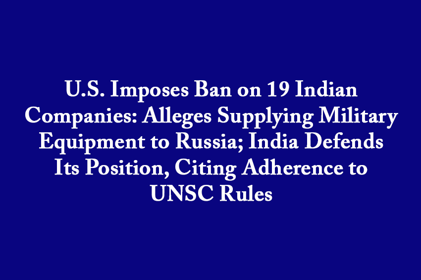 The United States has recently banned 19 Indian companies, accusing them of supplying military equipment to Russia amid the ongoing Ukraine conflict...