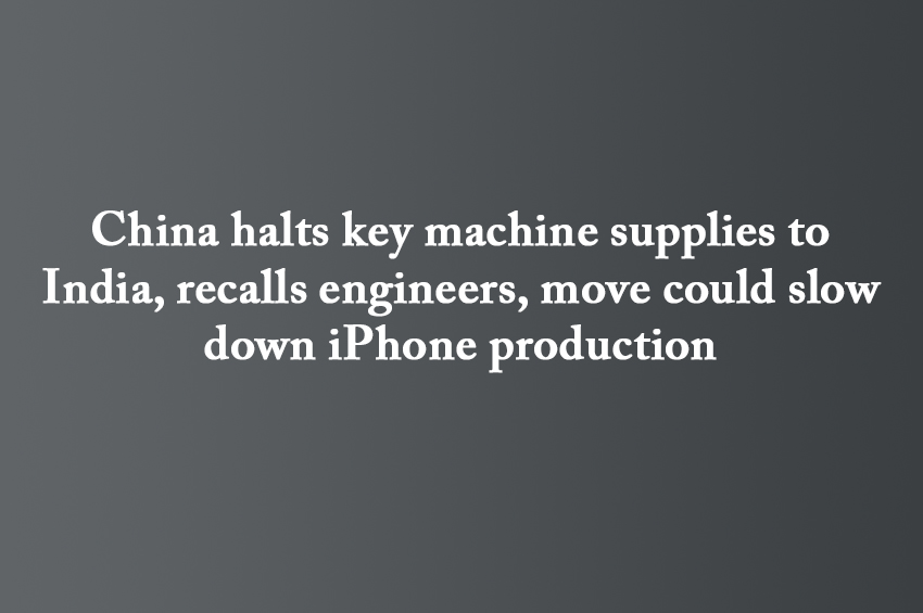China has reportedly stopped delivering crucial machines and parts used in India’s electronics and automobile manufacturing sectors...