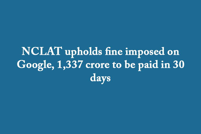 Bad news for Google. The National Company Law Appellate Tribunal (NCLAT) on Wednesday upheld the Rs 1337.76 crore fine imposed on Google...