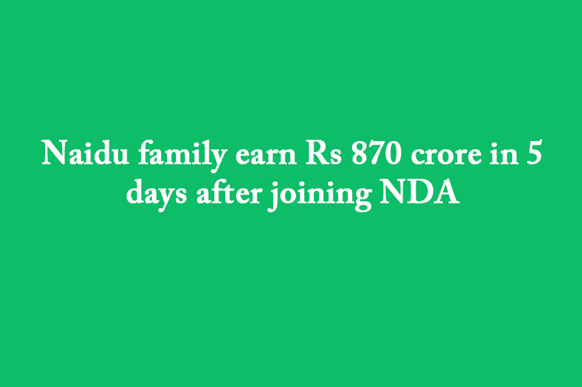 Chandrababu Naidu family's wealth has shot up by Rs 870 crore in the last 5 days, ever since he has joined National Democratic Alliance (NDA)...